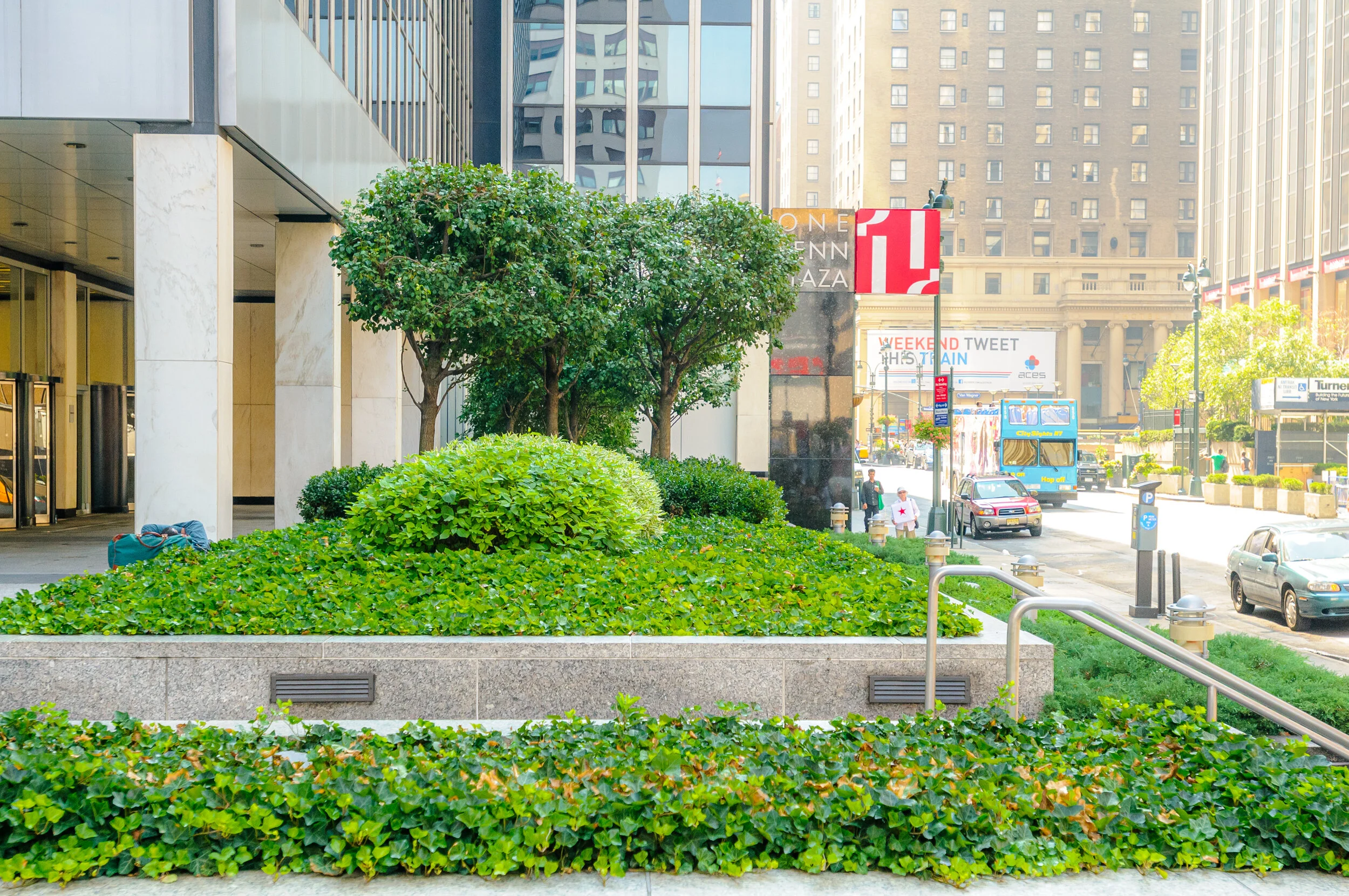 Located in the heart of Herald Square and surrounded by iconic neighbors such as Madison Square Garden, Macy’s, and the Farley Post Office, 1-2 Penn Plaza serves as an oasis of calm in one of the most bustling areas of Midtown Manhattan. Throughout the year, Plantus rotates accent flowers and ornamental shrubs, including knock out roses, phlox and azelias, and Manhattan euonymus. Plantus crew regularly visits the property to ensure plant health, with proper fertilization and weeding care.